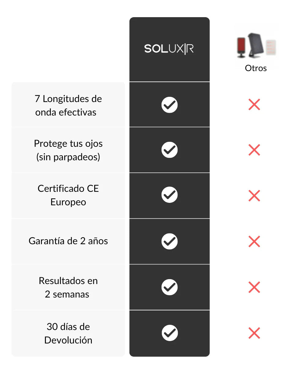 Todas las lámparas Soluxir incluyen 2 años de garantía y 30 días de devolución si no quedas satisfecho.